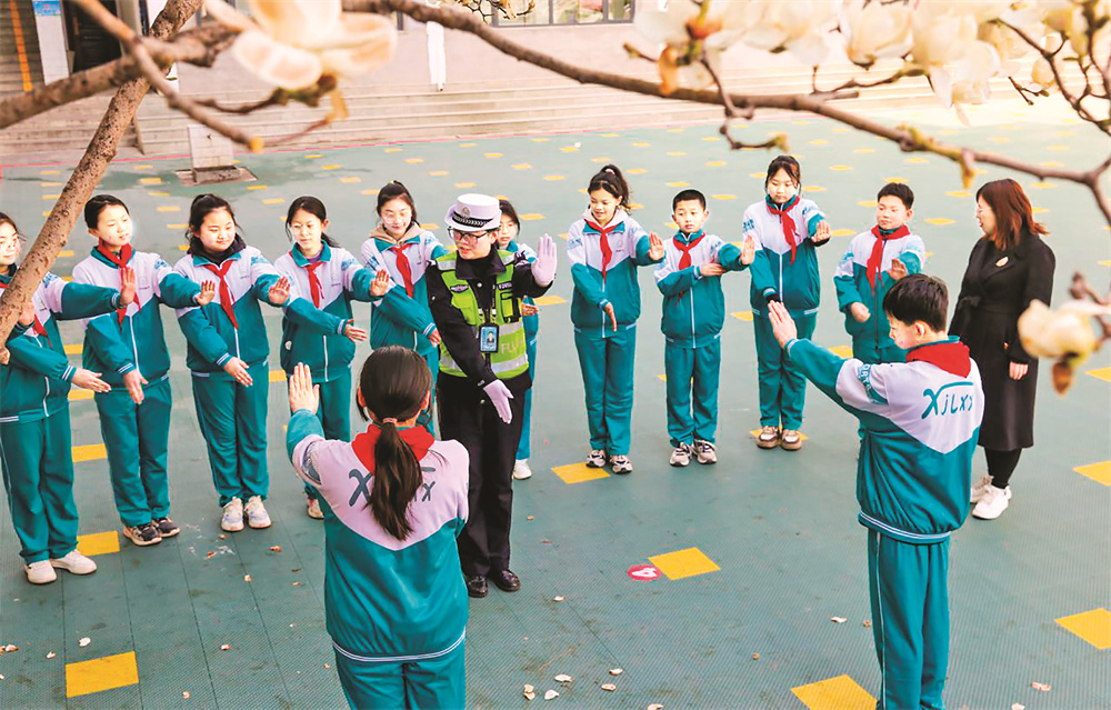 民辅警走进辖区中小学校园,根据学生们上学放学、出行的特点,通过发放宣传读本、观看交通事故案例视频等方式,讲授中小学生安全步行、安全骑乘、交通避险和道路交通应急处置等方面的知识。张秀峰 李官海