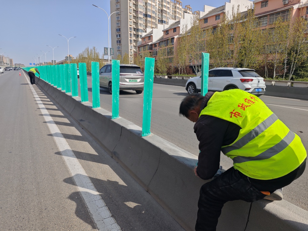 除了更新维护桥梁防眩板外,该中心对中心城区主要桥梁的桥墩设施也进行了精细化养护,并对破损路面进行了修复,还同步粉刷更换了道路上锈蚀的指示牌、广告护栏等,切实治理各类道路安全隐患,确保市政基础设施处于良好状态,让市民出行更加安全舒心。