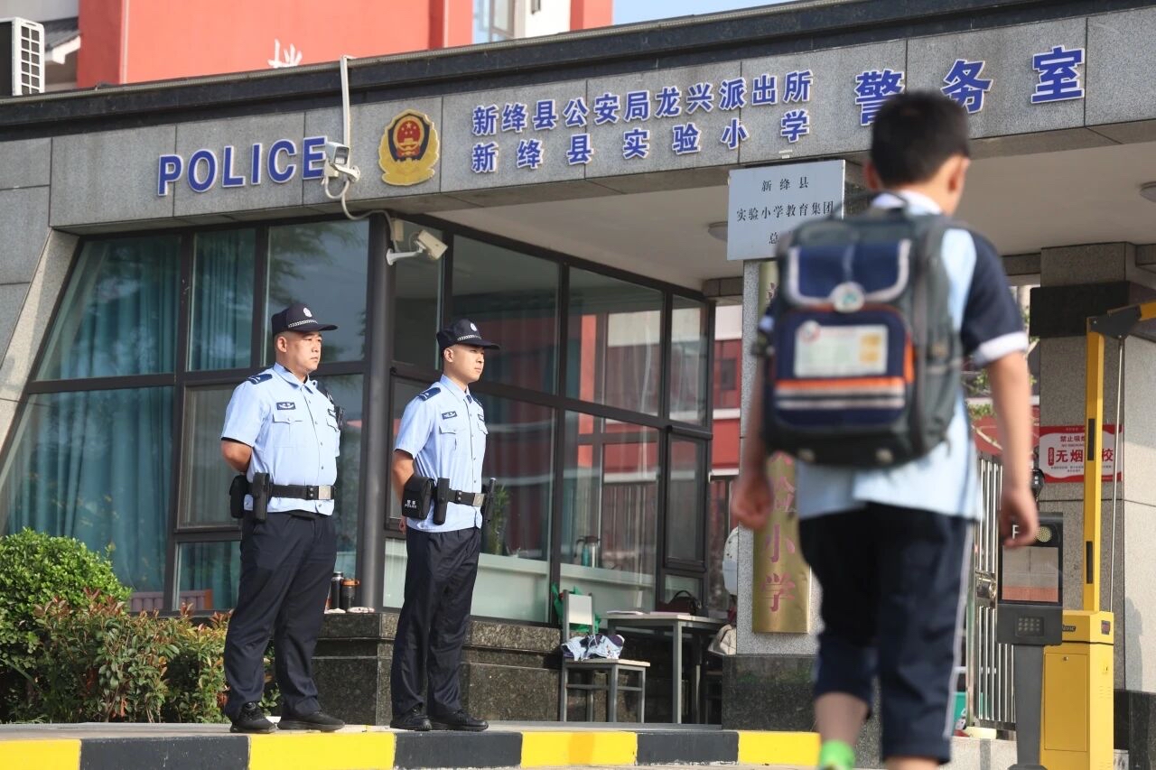 新绛县实验小学内,新绛县公安局龙兴派出所的民辅警开学前夕化身“安全管家”,为学校开展安防设施体检,并在“开学第一课”上为学生们讲解交通、防溺水、防诈骗等知识。