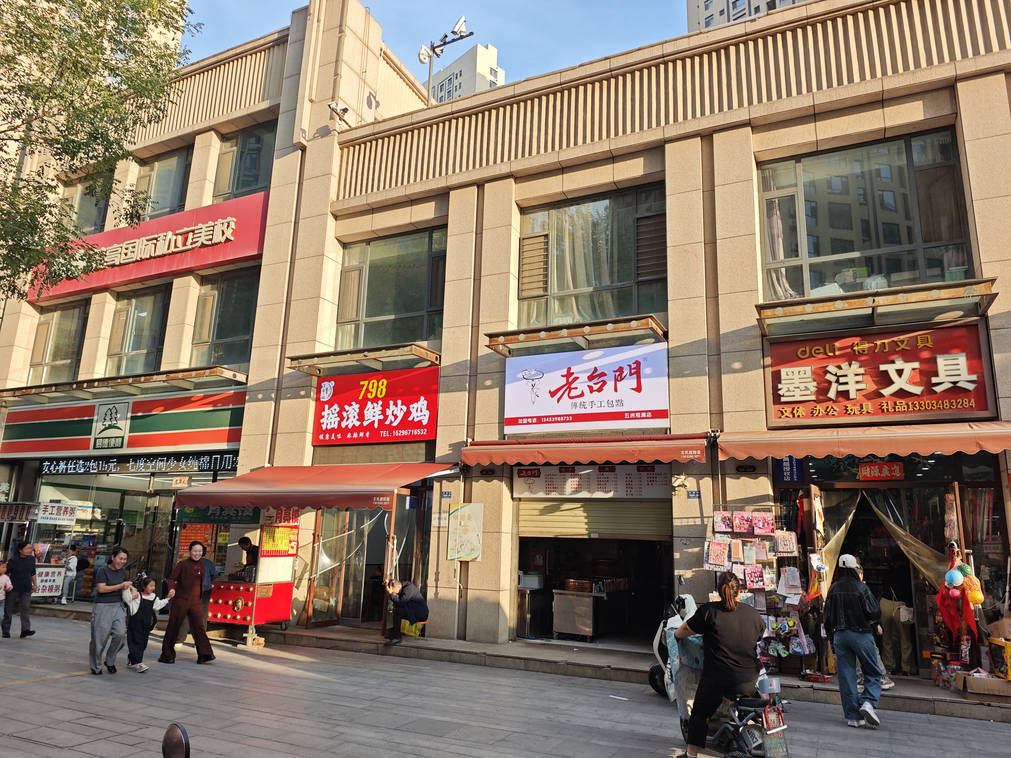 如今,在五洲观澜社区辖区内210余家商铺中,既有商超、医院、学校等23项“刚需业态”,也有健身、早教等20余项“品质业态”,实现了“一店一早、一菜一修、一老一小”全覆盖。大型超市、医院、学校等为居民提供基本生活保障,各类餐饮商铺、便利店、托管机构等则为居民日常生活提供多元化选择。一刻钟便民生活圈的建设,让购物、就医、教育等需求“步行即达”,真正实现了生活所需不出“圈”,街巷盈满烟火气。