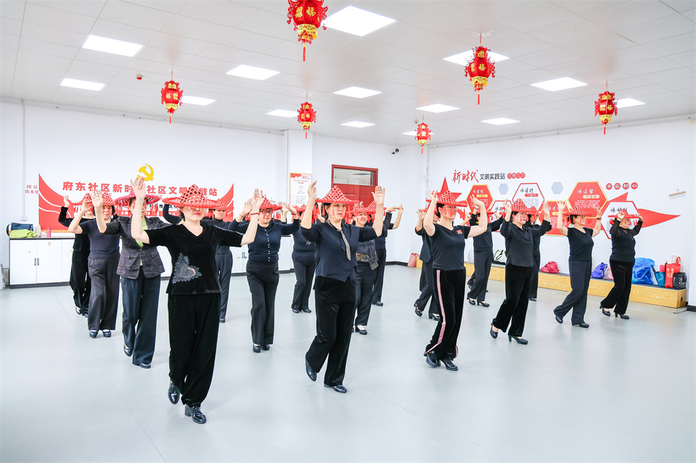 为让社团活动持续开展,府东社区精心规划活动场地与时间、准备笔墨纸砚等用品。如今,该社区里每天都充满蓬勃生机:走秀队的排练声、合唱团的歌声、书画社的墨香交织在一起,构成了“安乐如梦”服务板块最生动的写照。