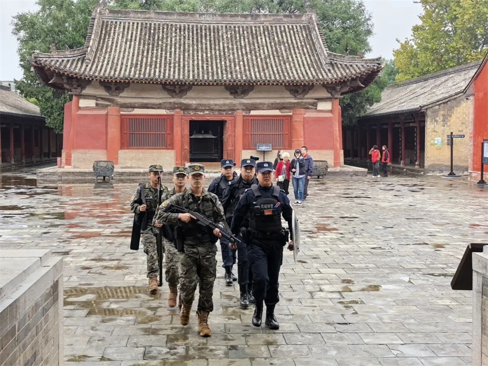 永乐宫的红墙前,芮城县公安局古魏派出所民辅警是“文化保镖”,更是游客的“定心丸”。