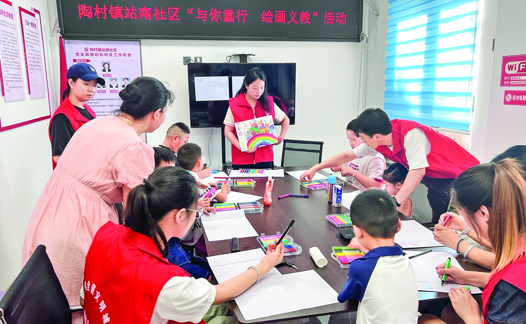在“与你童行 绘画义教”创意绘画活动中,社区志愿者任雅佳担任绘画授课老师。