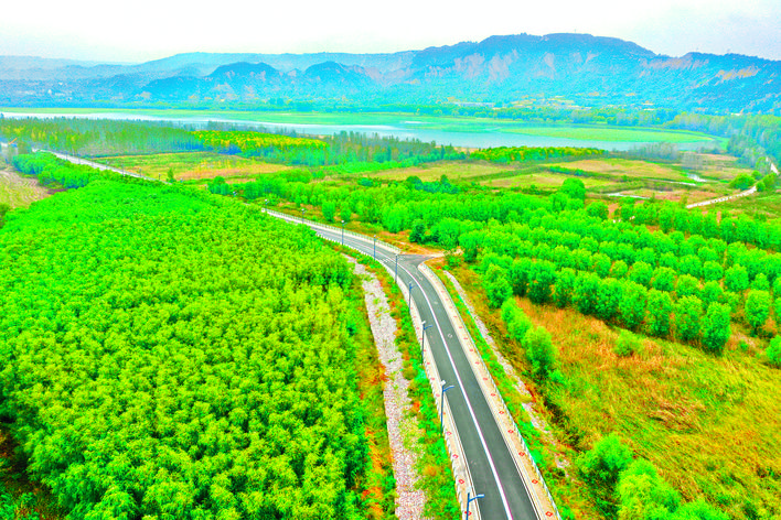 10月15日,深秋的黄河一号旅游公路平陆段两侧,层林尽染,风光秀丽。如带的黄河与岸边秋色、错落有致的村庄交相辉映。 近年来,平陆县加快沿黄生态廊道建设,加大生态示范创建力度,统筹推进山水林田湖草沙系统治理,黄河山水、黄土风情、田园风光等相映成趣,勾勒出古虞大地优美图景,实现了黄河“风光美起来”的美好愿景。