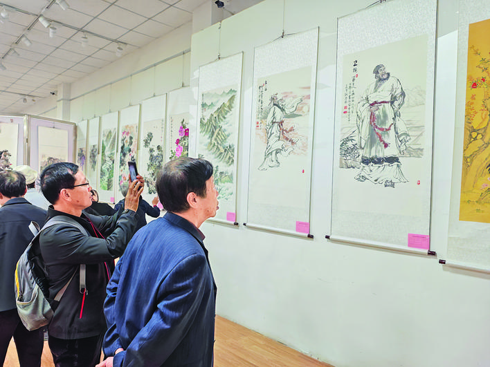 走进展厅,墨香扑面而来。展览共展出卫氏宗亲及部分书法名家精品书画力作100余幅,各具风采、形神兼备。书法真草隶篆皆具,笔力沉雄,挥洒自如;绘画涵盖山水花鸟人物等题材,设色雅致,气象万千。作品中的卫氏治家格言、卫氏及部分河东历史名人等内容,传递了卫氏家族的治家智慧和人文底蕴。与会人员不时驻足欣赏,或轻声探讨笔墨章法,或拿手机拍照留念,现场气氛热烈。