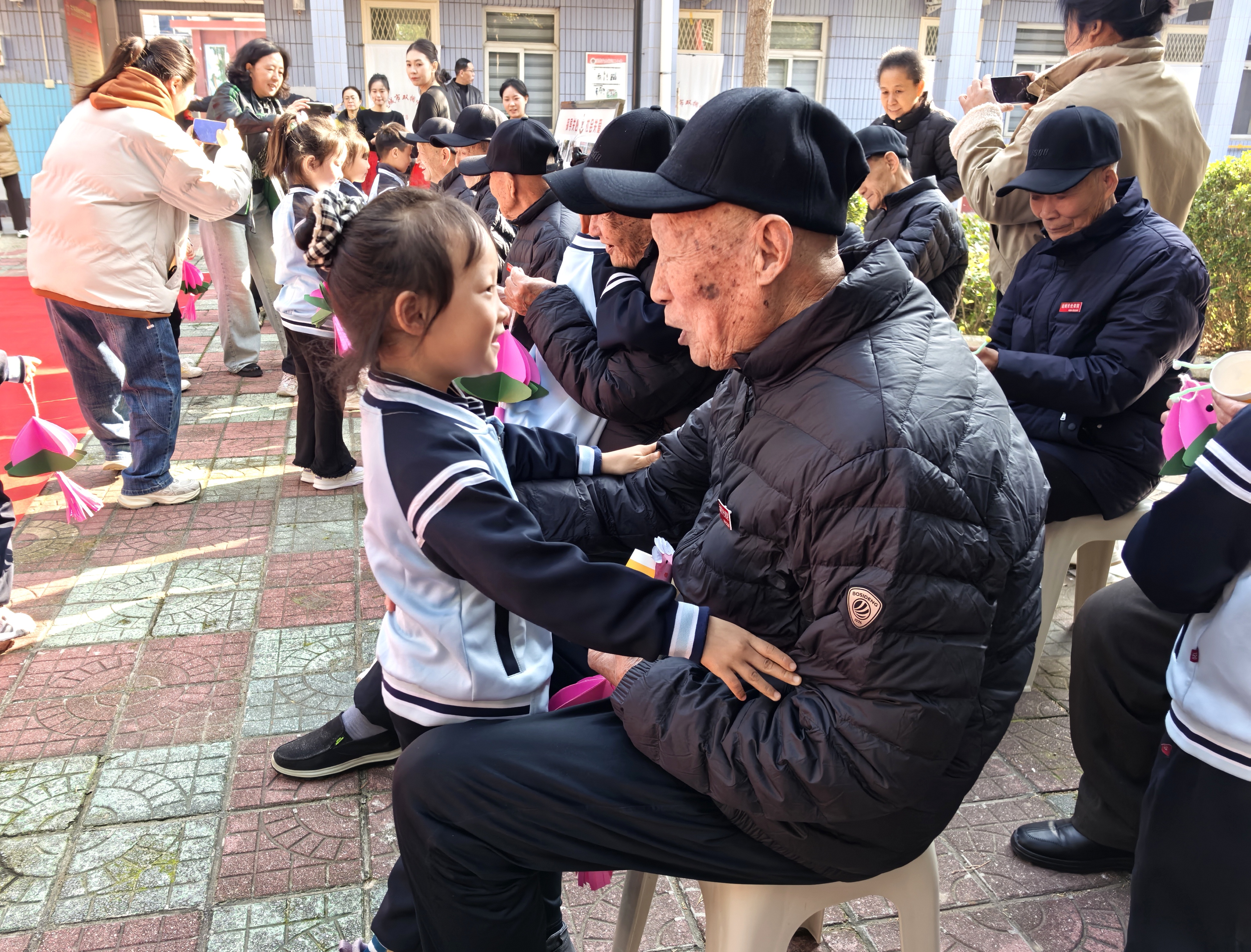 10月27日,盐湖区南城中心幼儿园的小朋友们来到运城市光荣院,为老兵们送上自己制作的手工作品,祝福他们重阳节快乐。记者 陈怡霏 摄