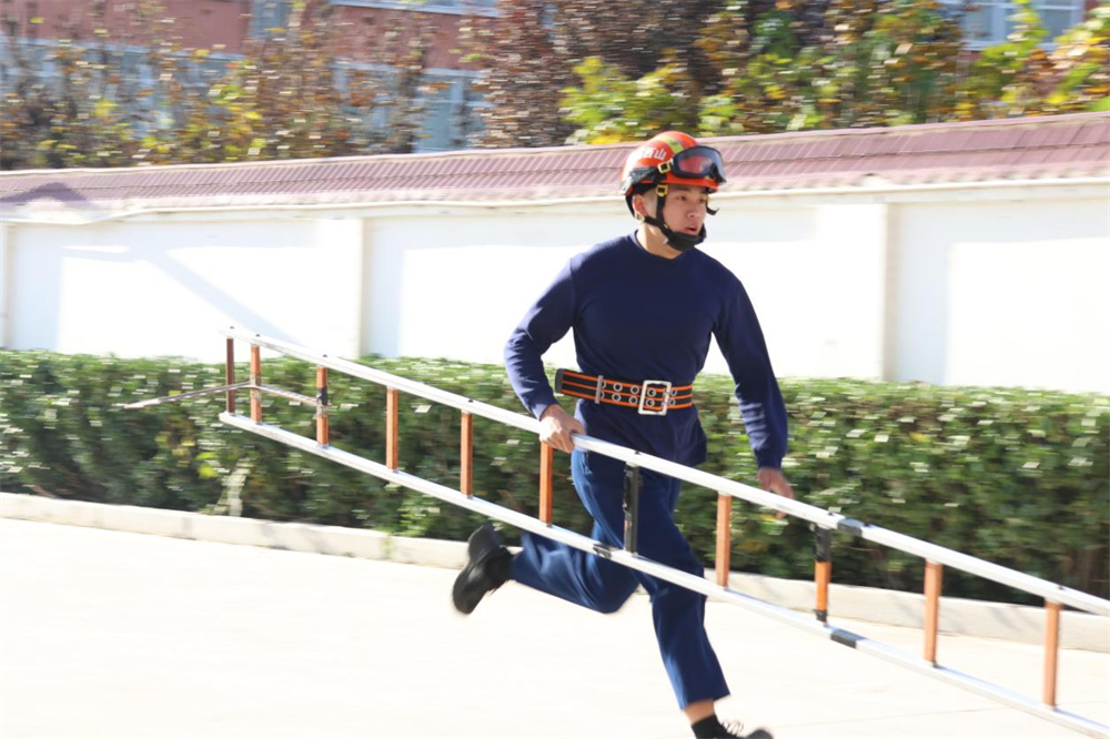比赛现场,气氛热烈而紧张。在“攀登挂钩梯上四楼”科目中,选手们手抓挂钩梯快速冲刺,精准挂钩、蹬梯攀爬、翻越窗台一气呵成,整套动作干净利落,展现出扎实的基础技能;“百米消防障碍”赛道上,选手们穿越独木桥、跨越障碍墙、拖拽水带前行,每一个环节都争分夺秒,在速度与稳健之间寻找最佳平衡,汗水浸湿了制服却丝毫没有减慢前进的脚步;“无人机全景图拍摄及侦查”科目中,选手们熟练操控无人机,在复杂环境中精准定位目标、拍摄全景画面、传输实时数据,展现了现代消防救援中科技赋能的强大优势;“真火模拟扑救”和“应急救援装备操作”现场,选手们沉着冷静、默契配合,熟练运用破拆工具、灭火设备处置突发状况,用专业操作诠释了“养兵千日、用兵一时”的备战理念。