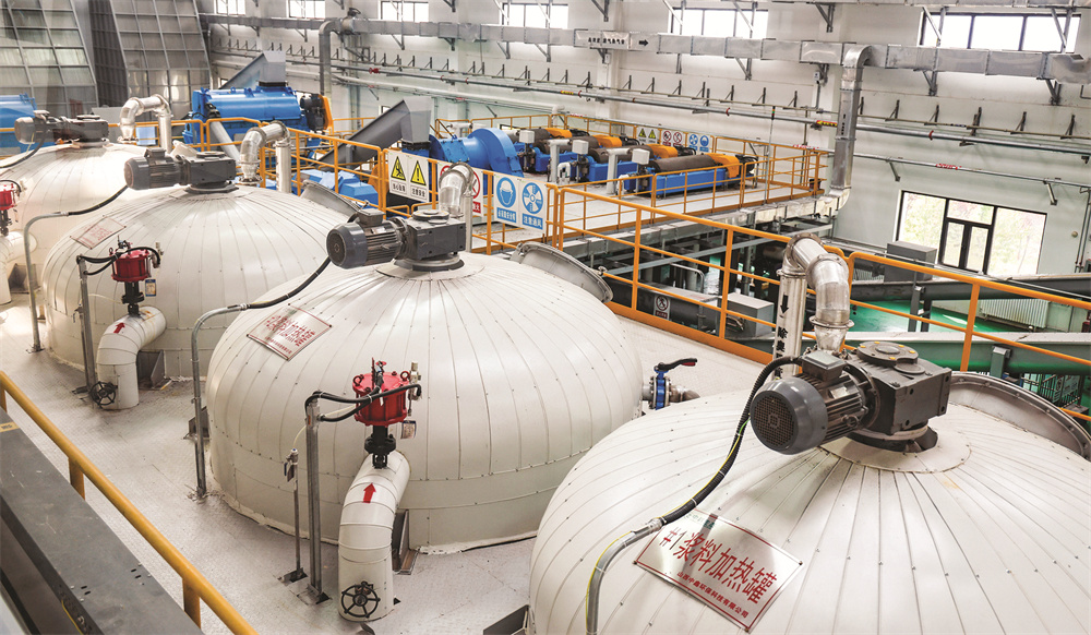 山西中鑫环保科技有限公司预处理车间内,垃圾处理设备在不停运转,餐厨垃圾将被加工成工业油脂、沼气等产品,循环利用。