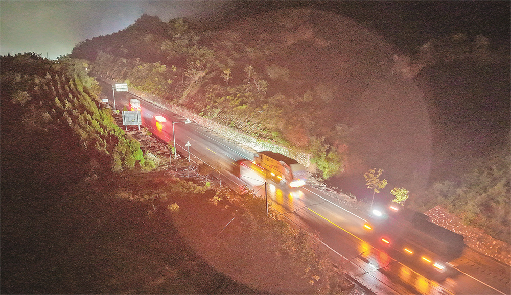 垃圾清运车夜间行驶在中心城区至夏县庙前镇运城市生活垃圾焚烧发电厂的山路上