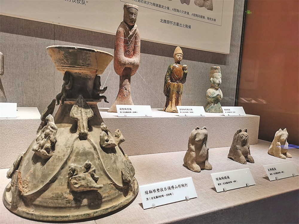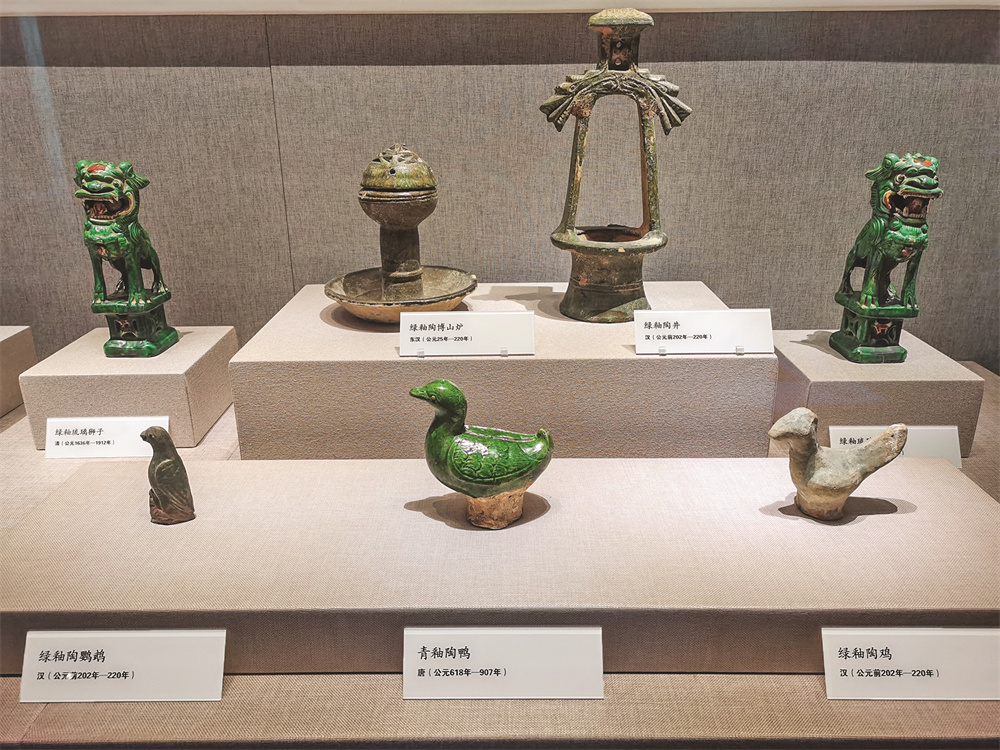 唐青釉陶鸭、明黄绿釉琉璃立俑、战国彩绘云气纹茧形壶……既有生产生活用品,又有摆件装饰之用,透过一件件不凡的陶器,人们不仅看到了古时工匠的巧思妙技,更从侧面获悉了当时的社会生活与审美情趣。例如,唐代青釉陶鸭的造型生动活泼,釉色清润,体现了唐代包容开放的文化气息;而明代黄绿釉琉璃立俑则凭借其鲜艳的釉色和细腻的工艺,成为展览的一大亮点。一同展出的还有汉绿釉陶鹦鹉、汉绿釉堆塑伎乐俑博山形陶灯等珍贵文物,它们共同构成了一部跨越数千年的陶器史诗,让观众能够直观感受中国古代陶器艺术的博大精深。