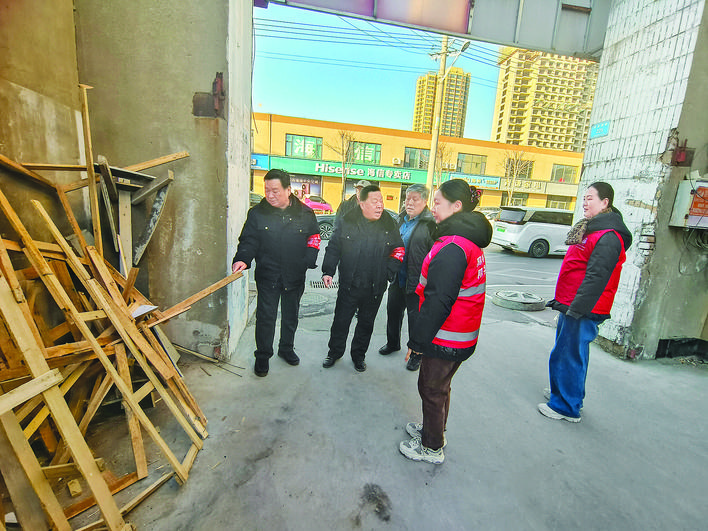 盐湖区中城街道西花园社区“红袖章”巡逻队协助社区消除安全隐患。(资料图片)