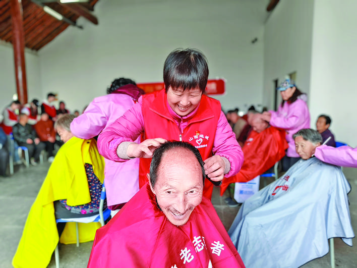 活动现场,志愿者分工明确、动作娴熟。理发志愿者俯身询问老人发型偏好,指尖翻飞间,原本凌乱的头发变得整齐利落,老人对着镜子露出笑容;护理志愿者蹲在老人身前,轻握布满皱纹的双手,小心翼翼修剪指甲,还不忘讲解日常卫生常识;按摩志愿者则用专业手法为老人推拿肩颈腰背,缓解常年劳作留下的酸痛。“今天心情很畅快,志愿者服务很周到、很热情。”村民杨保家的话语里满是感激。