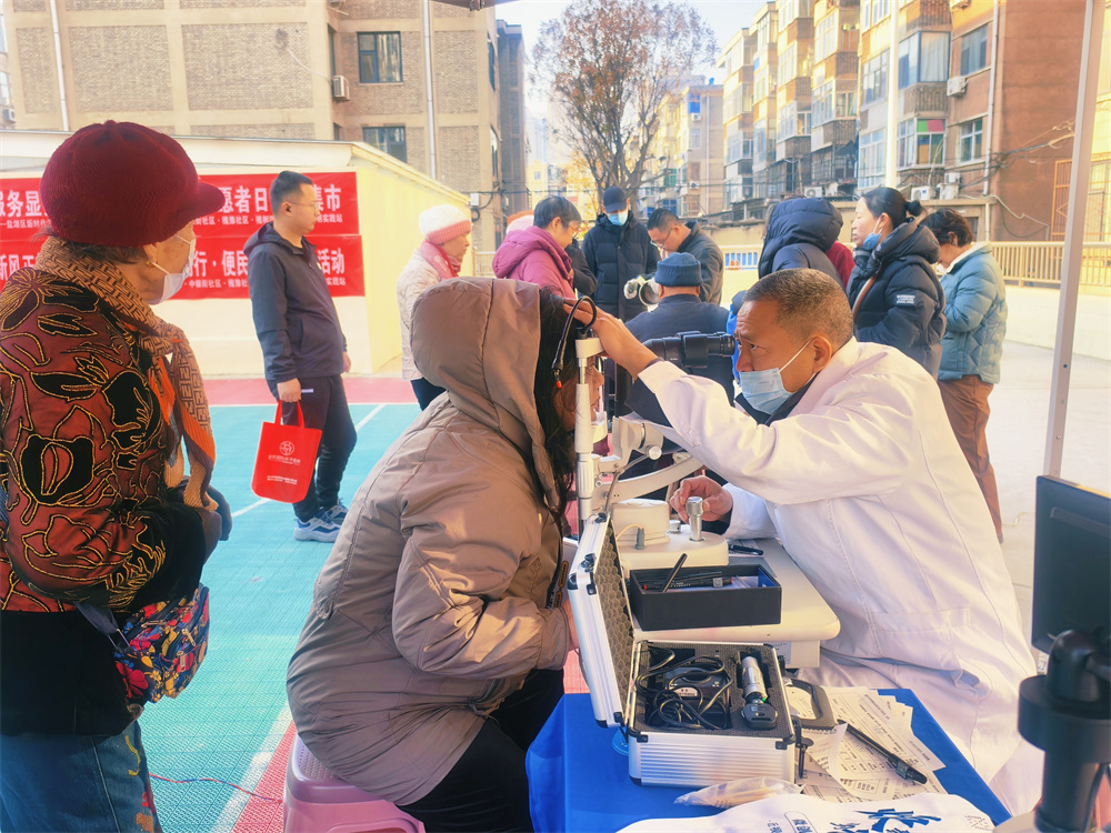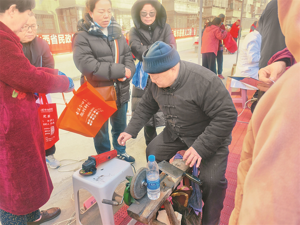 政策法规宣传区里,志愿者配合专业人员,用“家常话”解读就业创业、反诈禁毒、消防安全等政策知识。在便民服务区,磨刀师傅的砂轮飞速转动,将居民送来的刀具剪刀打磨干净后逐一交还;按摩师傅细致地为老人调理身体;小家电维修技师认真帮居民检修电器。健康义诊区同样热闹。志愿者引导居民排队等候,协助医护人员测量血压、血糖,登记眼部检查和听力检测信息。遇到腿脚不便的老人,志愿者主动搀扶,陪同就诊;针对慢性病患者,医护人员耐心记录健康数据,提醒注意事项。“家门口就能做全面检查,还有志愿者帮忙,太方便了!”居民张女士称赞。