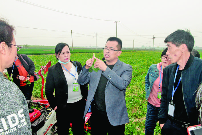 赵兴站在田埂边给学员讲解技术要点。 (资料照片)