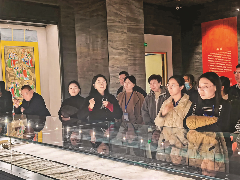 随后的展厅参观环节,教师们知行合一,感受文化魅力。在“大河之东”基本陈列中,教师们循着文明的足迹缓缓前行:远古遗址见证人类起源,商周青铜器彰显礼乐文明,唐代石椁雕刻盛唐气象,盐务文书诉说千年盐运历史……每一件文物都成为无声的讲师。博物馆不再仅仅是文物的收藏所,更成为一个鲜活的历史讲堂、一个立体的文化空间。