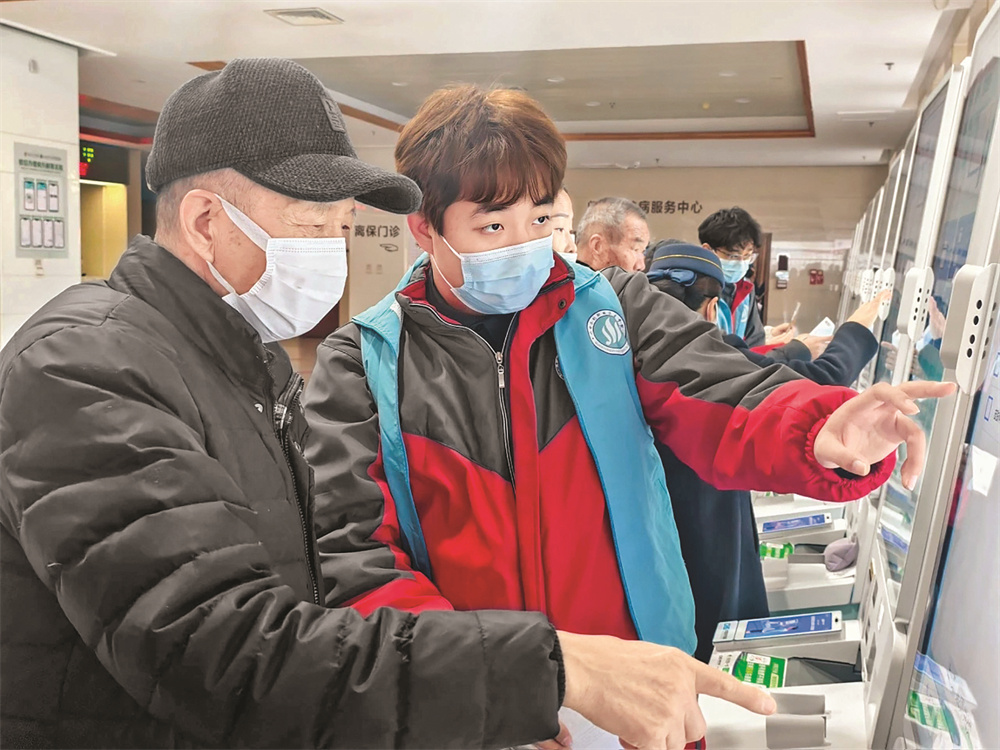 在接受了系统的志愿服务培训后,这些身着蓝色志愿马甲的青年志愿者迅速投入门诊服务一线,热情协助来院患者办理挂号、缴费、打印报告、取药等,用细致周到的服务为寒冷的冬日增添了一抹温暖。