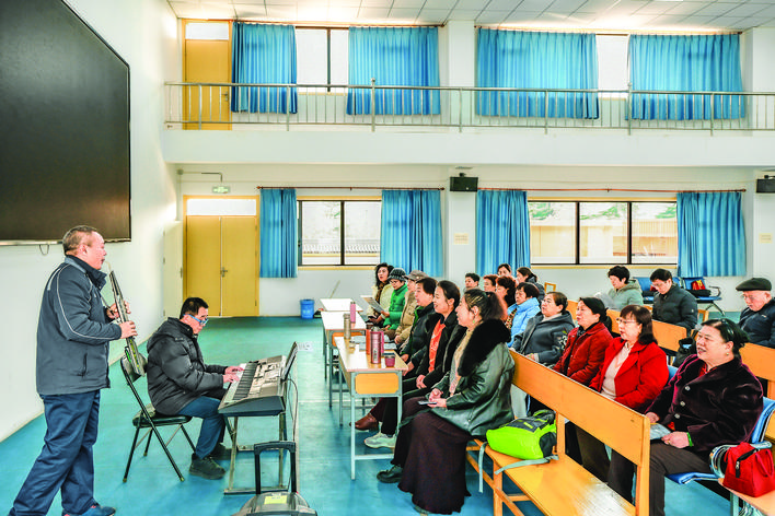 叠翠社区居民进行大合唱排练。