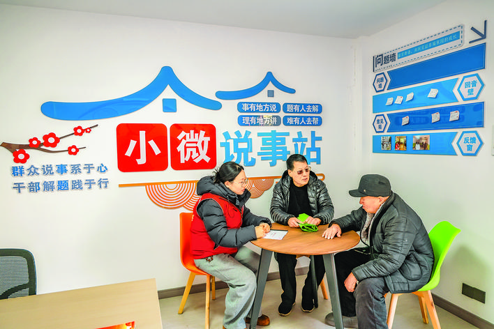 每周三下午,翠微小区党群服务站的“小微说事议事站”总是座无虚席。社区工作人员、物业代表、居民代表围坐一堂,共商小区管理、环境优化等大小事务。在该党群服务站外,12个“小区说事微信群”24小时在线接诉,广场“说事台”、凉亭“说事凳”让居民随时随地能开口,真正实现“诉求不用跑,家门口就能聊”。“服务站升级后,问题解决更快,群众心里更暖,我们和居民的距离也更近了!”翠微小区党支部书记任保堂感慨道。