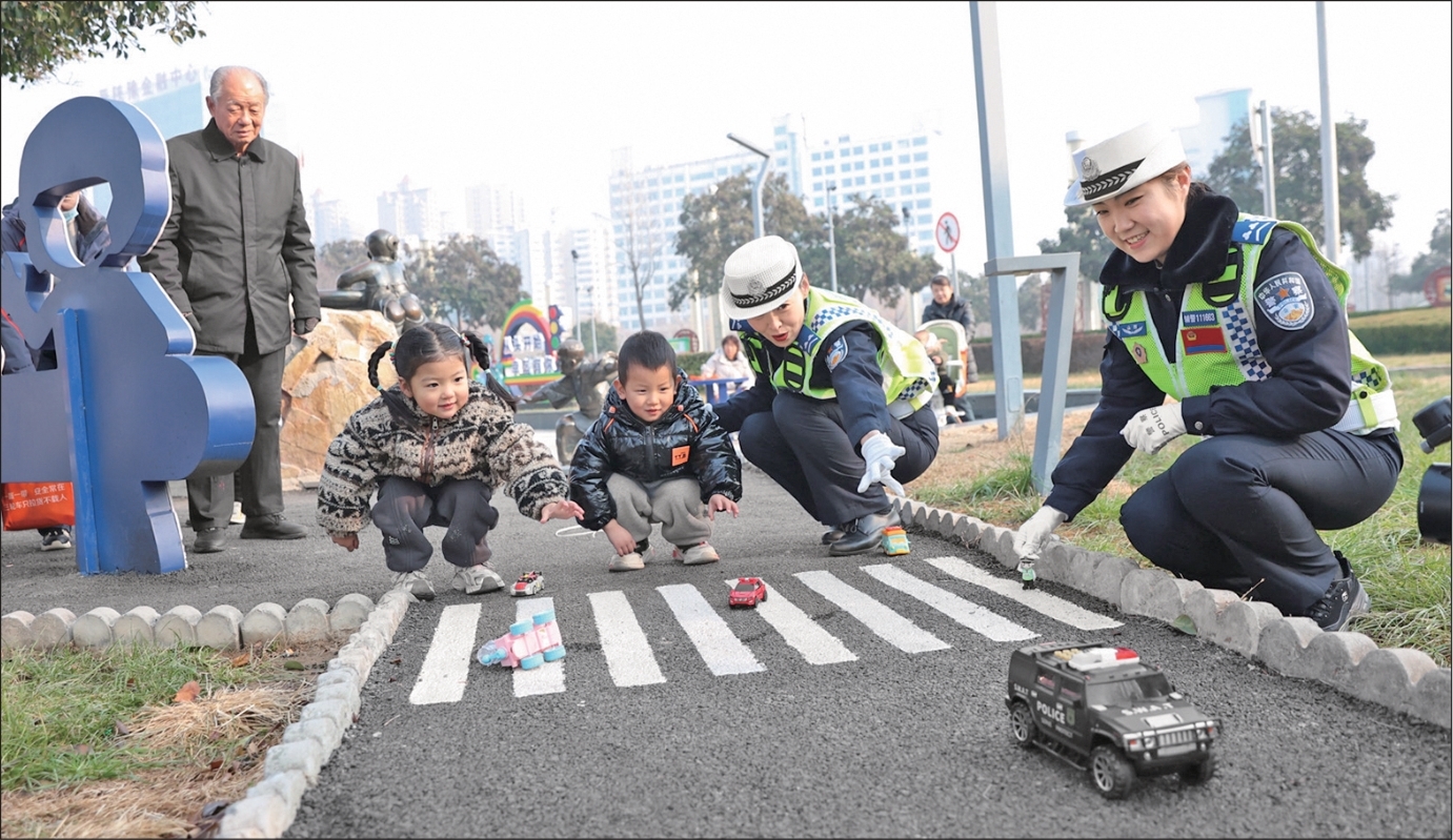 冬日的中心城区南风广场,暖阳铺洒,行人如织。西南角一处全新亮相的“交通安全学习苑”,吸引着往来市民驻足。