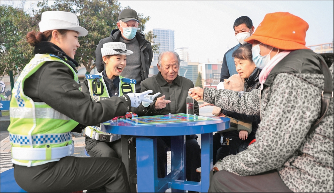 另一区域的氛围同样热烈,老人们围坐在蓝色的圆桌旁,和民辅警一起玩交通安全棋,大家在欢声笑语中记住了“开车不喝酒”“礼让斑马线”等交通安全法规。文明交通宣传展板前,市民们驻足细看,酒驾危害、非机动车行驶规范等内容以图文并茂的形式呈现,直观又深刻。