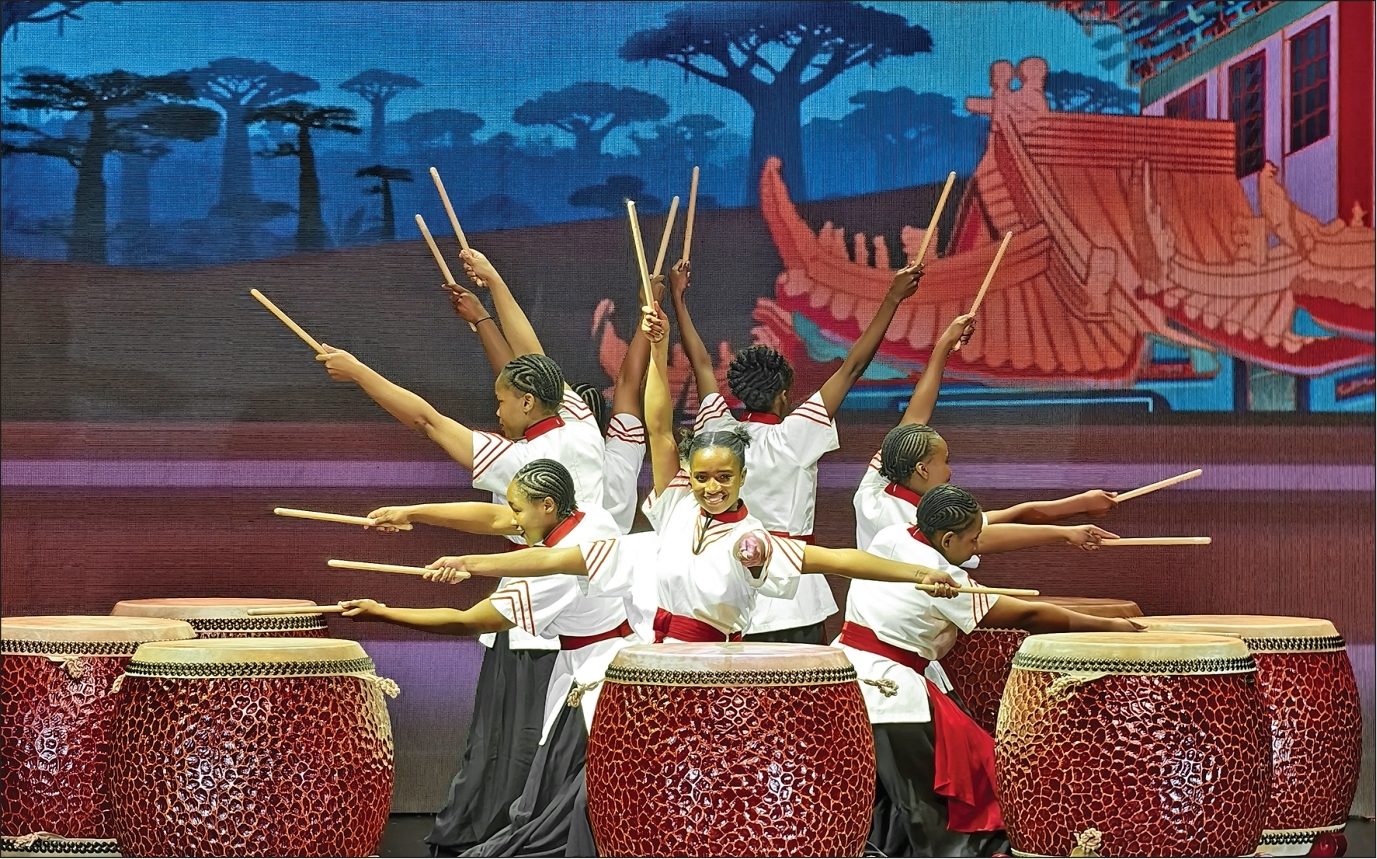 首演现场,绛州鼓乐的千年鼓点与光影交织,六幕剧情以绛州鼓乐的节奏变化层层递进,从家庭温情到追梦坚守,绛州鼓乐时而雄浑激昂、时而婉转细腻的演奏,生动诠释了希望、自信与欢乐的共通精神,引发观众强烈共鸣。演出落幕时,观众席掌声经久不息,小观众们甚至当场模仿绛州鼓乐的敲鼓动作,尽显这一非遗艺术的感染力。一位南非演出成员的母亲艾达激动地表示,孩子因学习绛州鼓乐变得更加自信,“看到她在舞台上敲起中国鼓,一切付出都值得”。