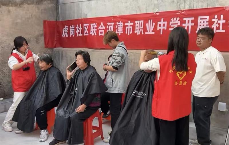 义剪区,来自河津职业中学的学生志愿者为社区居民、户外劳动者免费理发,娴熟的技术和真诚的服务赢得了大家的称赞。“这些娃娃手艺真好,态度也好,剪完头发感觉整个人都精神了!”刚理完发的环卫工人李智财对着镜子左看右看,脸上洋溢着满意的笑容。此项活动不仅为居民提供了便利,更为学生提供了宝贵的实践机会,让青春风采在志愿服务中闪耀。