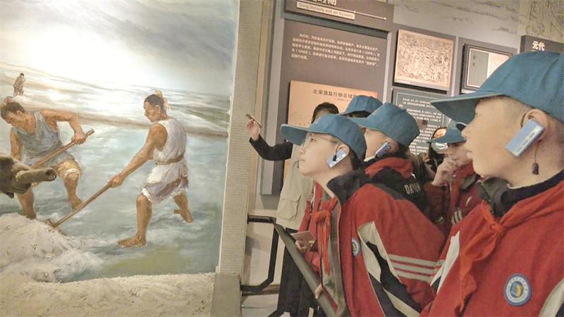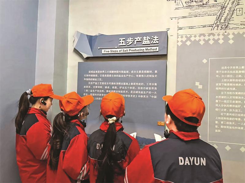 展览以清晰的图表与场景复原,系统呈现运城盐业的发展脉络。从先秦时期“自然结晶、集工捞采”的原始方式,到隋唐成熟完备的“五步产盐法”;从关系国计民生的盐政制度,到因盐而兴的城镇变迁……历史图景徐徐铺展,五千年的盐文化从书册文字变成可触可感的文明印记,让学生们切身感受到古人智慧与盐湖文化的深厚底蕴。