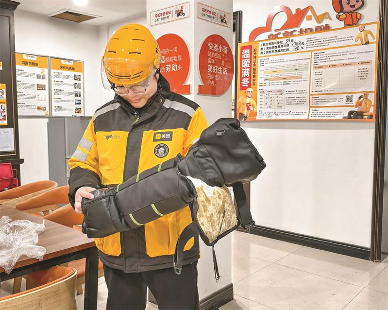 当天,市委社会工作部组织志愿者来到骑手之家,为一线从业者发放御寒物资“温暖大礼包”,包括保暖护膝、手套等。“党和政府都很关心这个行业,经常看望、慰问我们,大家就业更有信心和底气。”一名骑手表示。